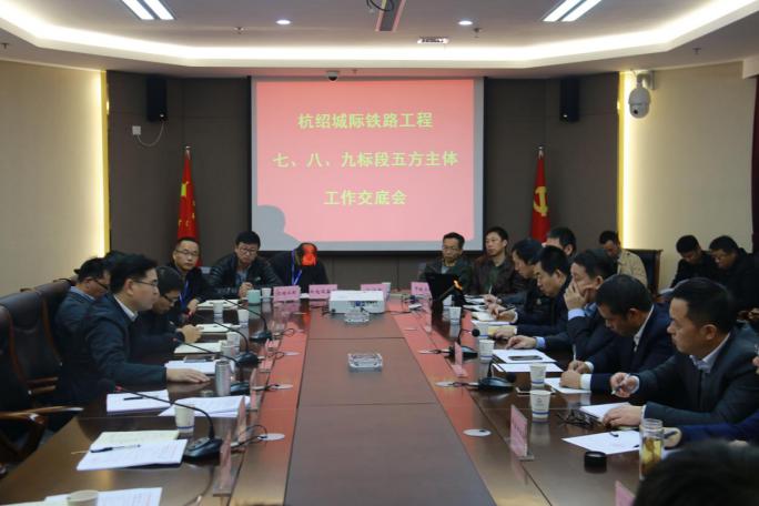 在前期1-6標段開(kāi)工建設基礎上, 11月29日下午,柯橋區軌道交通集團專(zhuān)題召開(kāi)杭紹城際鐵路工程土建7、8、9標段五方責任主體工作交底會(huì )。杭紹城際鐵路工程根據項目總體工籌計劃,全線(xiàn)共劃分為9個(gè)土建標段,這次SG-7、8、9三個(gè)標段對應土建施工中標單位分別為中鐵十六局集團有限公司、中鐵建工集團有限公司、中鐵三局集團有限公司,監理單位分別為甘肅鐵科建設工程咨詢(xún)有限公司、浙江江南工程管理股份有限公司、浙江明康工程咨詢(xún)有限公司。這次工作交底會(huì )由集團公司黨委書(shū)記、董事長(cháng)徐永祥主持,集團全體領(lǐng)導班子和各部室負責人、相關(guān)標段現場(chǎng)業(yè)主代表及勘察、設計、設計咨詢(xún)、施工、監理等單位負責人參加會(huì )議。會(huì )議的召開(kāi)標志著(zhù)杭紹城際鐵路工程9個(gè)土建標段招標已全部結束,全線(xiàn)進(jìn)入施工階段。