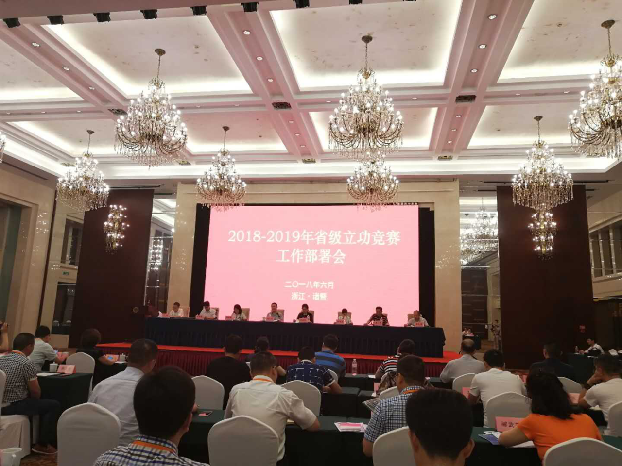 2018年6月26日,由省總工會(huì )、省發(fā)改委主辦,2018-2019年省級立功競賽工作部署會(huì )在諸暨拉開(kāi)帷幕,集團公司分管安全生產(chǎn)副總經(jīng)理魯麓樹(shù)與質(zhì)量安全部負責人陳云飛作為杭紹城際鐵路工程代表參加此次工作部署會(huì )。