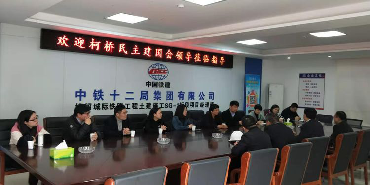 2019年3月16日上午,柯橋區民主建國會(huì )一行來(lái)杭紹城際鐵路SG-1標工地現場(chǎng)進(jìn)行座談?wù){研。中鐵十二局項目部項目經(jīng)理喬廣紅向柯橋區民主建國會(huì )介紹了SG-1標牛頭山隧道試驗段項目概況及工程進(jìn)展情況。座談會(huì )上,柯橋區民主建國會(huì )領(lǐng)導詳細詢(xún)問(wèn)了工程推進(jìn)過(guò)程中存在的困難,并對各參建方所做的工作給予了肯定。