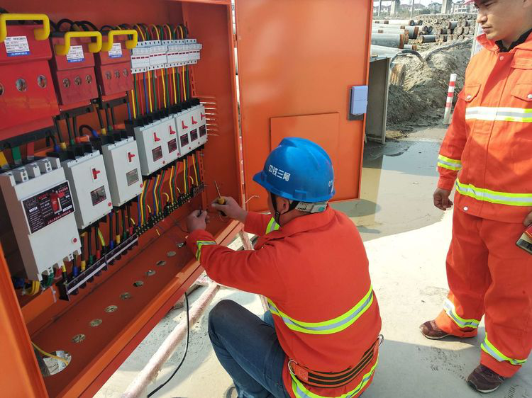 電工進(jìn)行接電,連接電源接通水泵抽水。