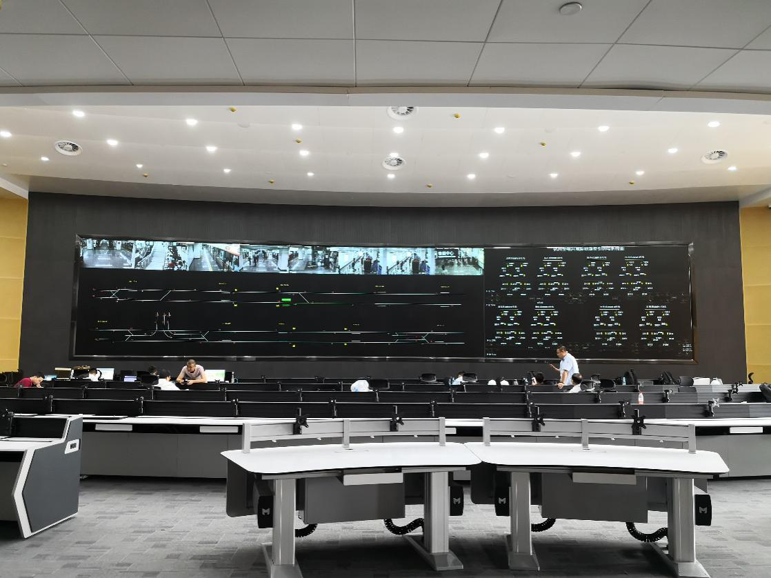 小知識:控制中心調度大廳大屏幕是地鐵線(xiàn)路的大腦,擔負著(zhù)杭紹線(xiàn)日常運營(yíng)調度、應急聯(lián)動(dòng)指揮及全線(xiàn)車(chē)站、車(chē)輛段所有系統運維指揮的重要任務(wù)。行車(chē)、電力、環(huán)控、自動(dòng)售檢票、視頻圖像及運營(yíng)組織等重要信息,集中接入到由48個(gè)顯示單元(70英寸)、3臺分布式主從處理器及附屬的外圍設備等組成的顯示系統,這個(gè)超大面積的大屏幕投影顯示系統長(cháng)度寬到了21米,高度為3.6米??蓪?/span>CCTV視頻監控信息、地鐵線(xiàn)路信號顯示系統、電力監控(SCADA)系統及通訊等計算機圖文信息、網(wǎng)絡(luò )信息或視頻圖像信息等各種信息進(jìn)行動(dòng)態(tài)的、綜合的、分區的靈活顯示,從而實(shí)現實(shí)時(shí)監視地鐵全線(xiàn)列車(chē)運行實(shí)時(shí)狀況、變電所供電設備狀態(tài)以及區間等信息。通過(guò)大屏幕系統對多種信號的高分辨率顯示,能精確地演示重要的監控細節,反映各有關(guān)部門(mén)互動(dòng)的情況,方便調度工作人員及時(shí)做出判斷和處理,實(shí)現實(shí)時(shí)監控和集中控制。