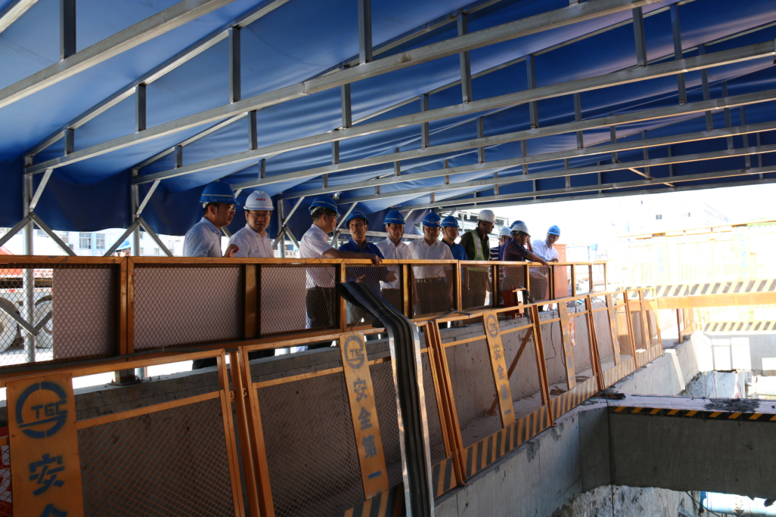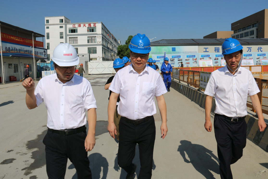 在施工現場(chǎng),區軌道交通集團董事長(cháng)、總經(jīng)理徐永祥詳細介紹了杭紹城際鐵路為“平安護航迎大慶”所做的一系列安全生產(chǎn)工作,并對稽山路站的現場(chǎng)安全生產(chǎn)、施工進(jìn)度、文明施工等情況作了匯報。