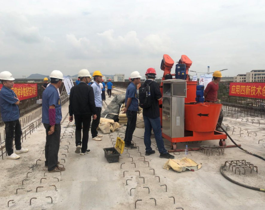 現場(chǎng)演示了新型的專(zhuān)用預應力管道智能壓漿機,極大程度的解決了預應力管道密實(shí)度檢測難度大、費用高、檢測頻率低的難題,和因預應力管道密實(shí)度影響橋梁結構的耐久性和運行安全問(wèn)題。觀(guān)摩者不時(shí)嘖嘖稱(chēng)贊,這為加強杭紹城際鐵路工程技術(shù)創(chuàng )新、促進(jìn)工程技術(shù)管理邁上了新的臺階。