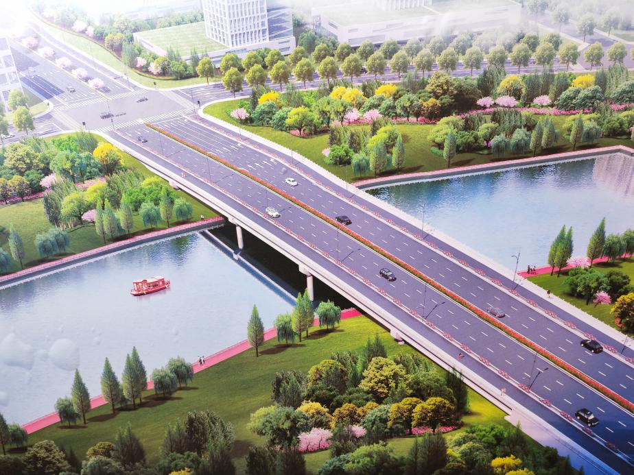 群賢路西延東小江大橋全長(cháng)200m,橋梁上部結構采用5×40m預應力砼后張法T梁,先簡(jiǎn)支后連續,下部結構采用柱式墩、柱式臺,墩臺采用樁基礎。橋梁跨越Ⅵ級航道東小江,通航凈空為22×4.5m。其中,東小江大橋2#、3#墩為水中墩,影響航道范圍在南北兩端及東西兩側設置防撞墩。
