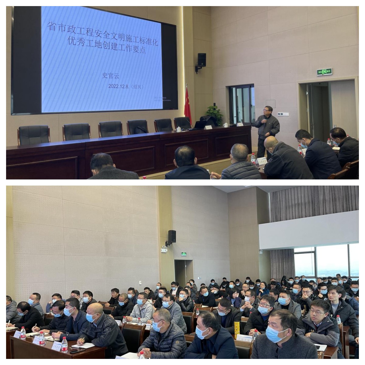 史官云以《省市政工程安全文明施工標準化優(yōu)秀工地創(chuàng )建工作要點(diǎn)》為題作專(zhuān)題講座,詳細解讀了省市政公用工程創(chuàng )優(yōu)達標工作要點(diǎn)、規范性文件,并從資料臺賬準備、現場(chǎng)考評、檢查驗收等多方面進(jìn)行分享。給集團安全文明標準化管理工作帶來(lái)了積極的指導作用。