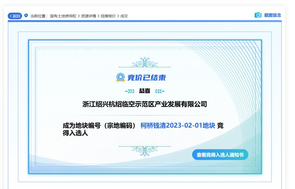 8月14日上午,浙江紹興杭紹臨空示范區產(chǎn)業(yè)發(fā)展公司以2280.91萬(wàn)元的價(jià)格成功拍得柯橋錢(qián)清2023-02-01地塊。