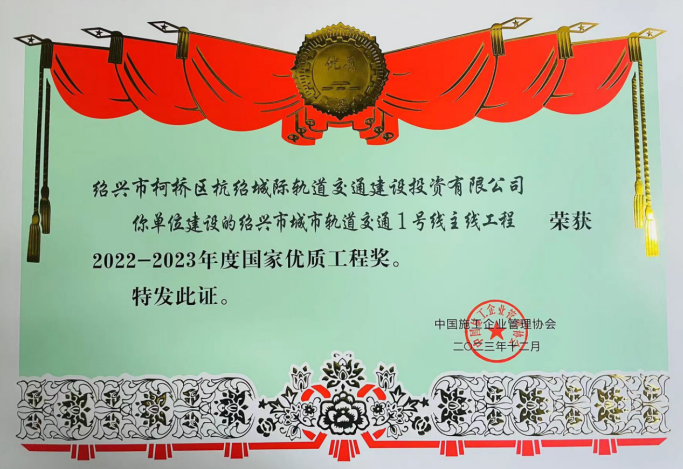 近日,中國施工企業(yè)管理協(xié)會(huì )評選的2022-2023年度國家優(yōu)質(zhì)工程獎的獲獎名單陸續揭曉,紹興地鐵1號線(xiàn)主線(xiàn)工程榮獲國家優(yōu)質(zhì)工程獎。